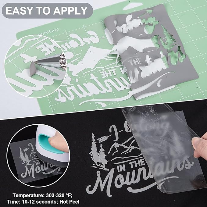 - ✂️EASY TO APPLY: Just use craft cutter and a home iron to get the job done. Apply for approximately 10-12 seconds at 302-320 °F (150-160 °C) and about 10 LBS of pressure. Be sure to cold peel.