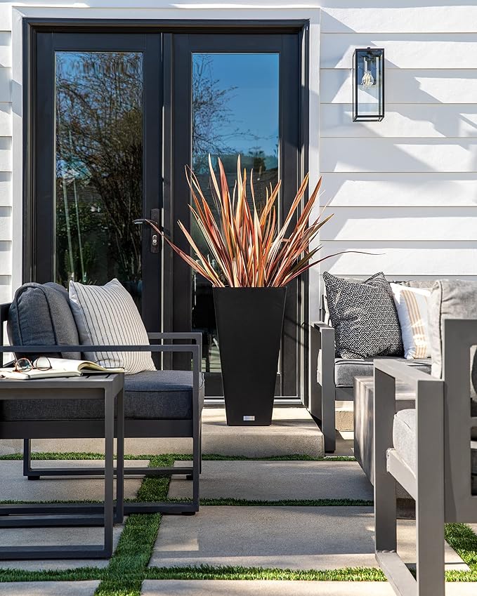 - GARDEN DECOR: Decorate your space with the Veradek Taper planter; Whether you use it as a patio, entrance or railing accent, this strong and sturdy yet lightweight contemporary garden container is the perfect fit with its sharp and modern appeal