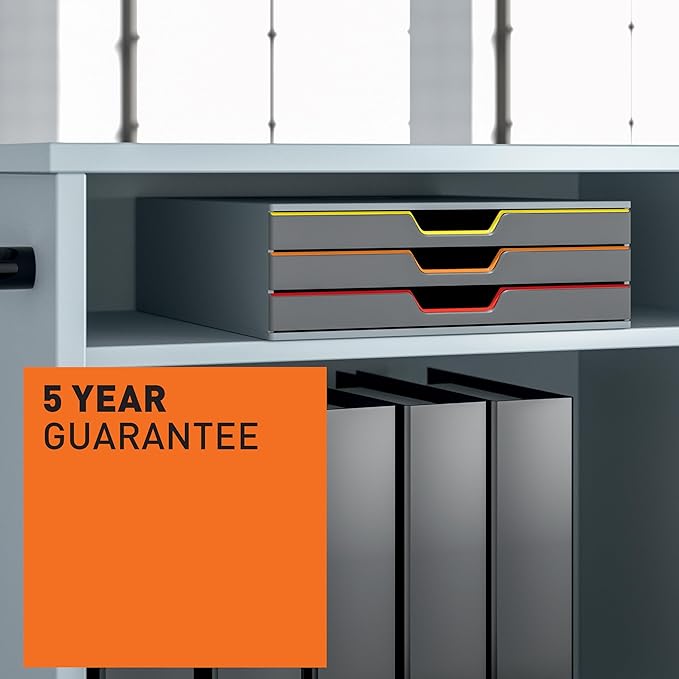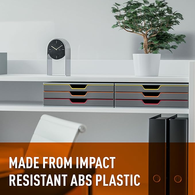 Durable Varicolor 3 Drawer Unit - Gray Desktop Drawer Set with 3 Color Coded Draws - Letter to Folio Size Files - Perfect for Storing Documents and Paper Work