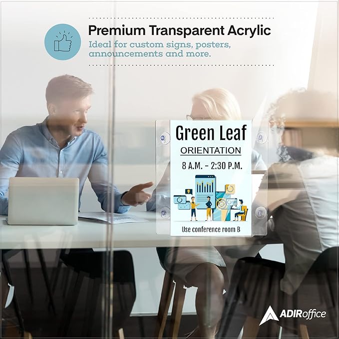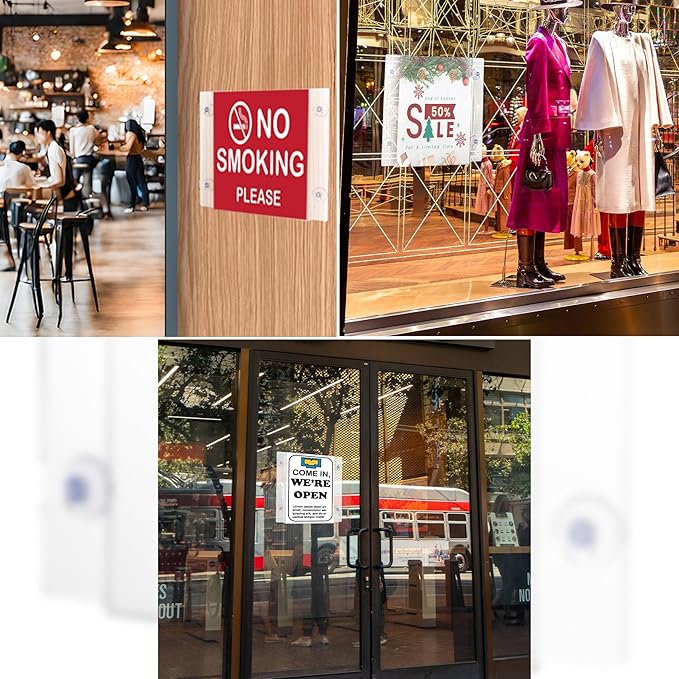 - Conveniently Sized: This window sign holder with suction cups is ideal for posting store hours, events, or sales. Its 8.5" x 11" size fits glass doors and windows, making it a versatile option for retailers, offices, and restaurants.