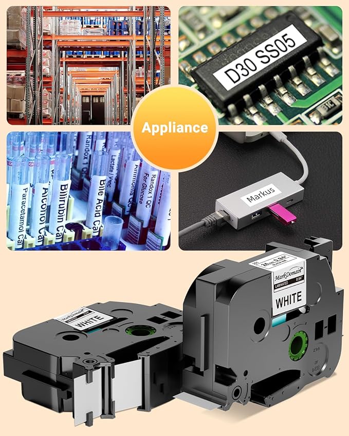 - Widely Use : Replacement for Brother Label Maker Tape 1 Inch 8m standard laminated tape which can maintain its beauty for a long time, and completely different from handwritten and paper labels. It is widely used in file/asset/network cable/warehouse management