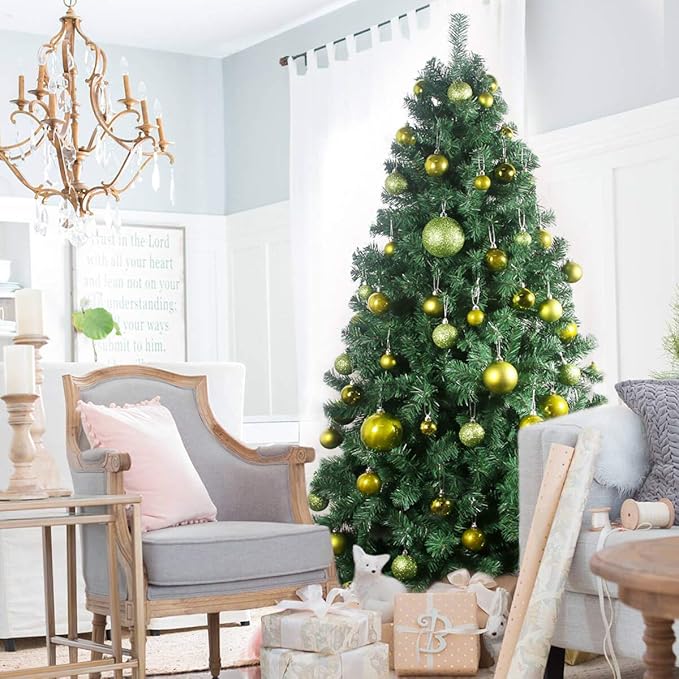 Lime Green 2.5" Christmas Balls Christmas Tree Decoration Ornaments Shatterproof Hanging Balls for Birthday Halloween Holiday Wedding Decorations Set of 24pcs