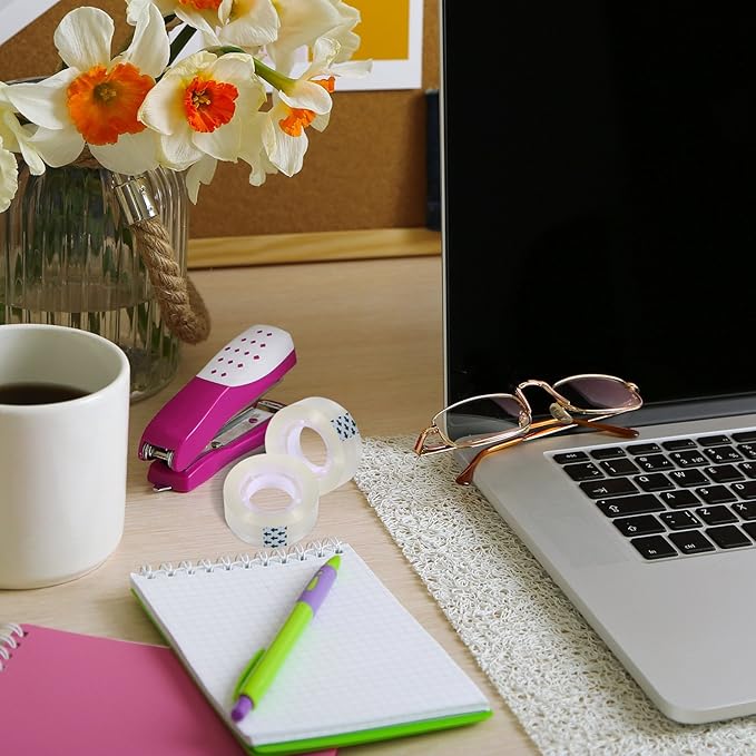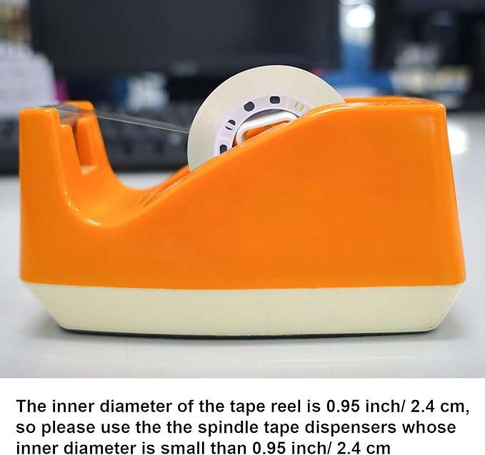 - Refill Easily: the transparent tape fits standard spindle tape dispensers; The inner diameter of the tape reel is 0.94 inch/ 2.4 cm, so please use the the spindle tape dispensers whose inner diameter is small than 0.94 inch/ 2.4 cm, easy to cut and use