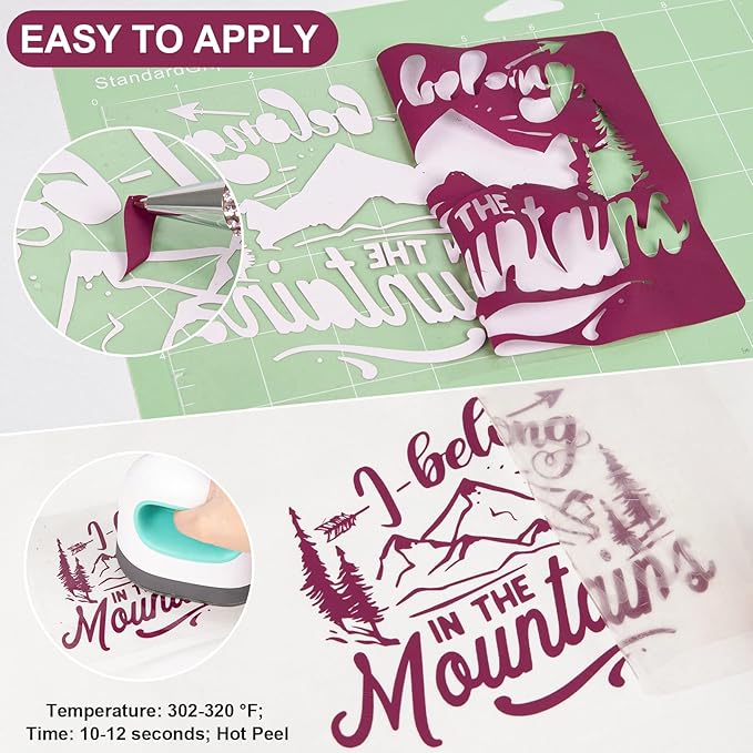 - ✂️EASY TO APPLY: Just use craft cutter and a home iron to get the job done. Apply for approximately 10-12 seconds at 302-320 °F (150-160 °C) and about 10 LBS of pressure. Be sure to cold peel.