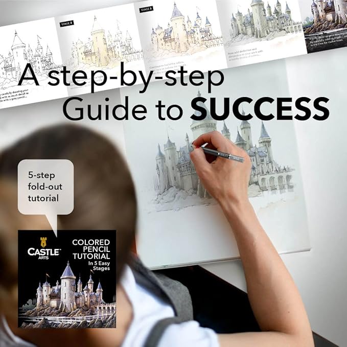 - BUILD YOUR SKILLS Unique fold-out tutorial enables you refine your colored pencil skills by re-creating the stunning Camelot illustration on the sleeve cover.