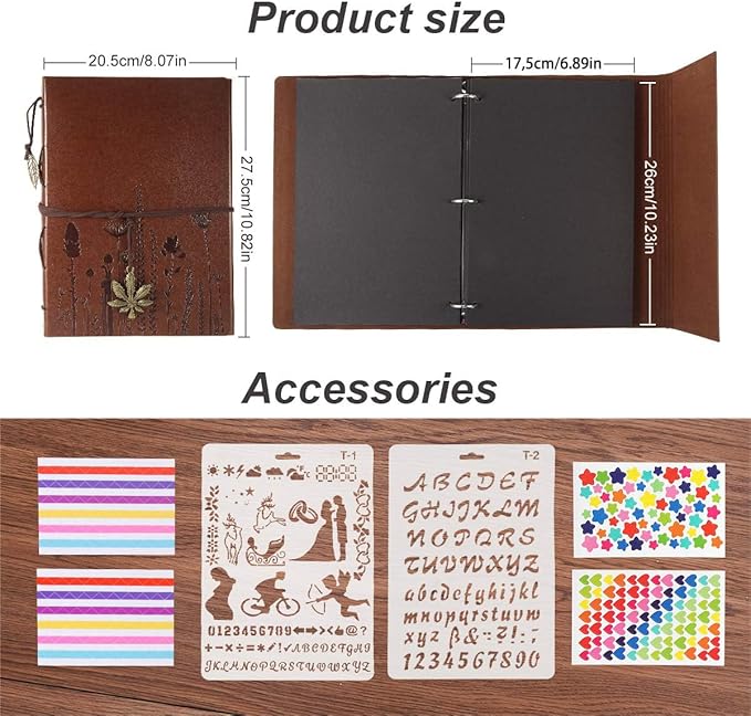 - 🎁【WHAT YOU GET】: 1 x Vintage Scrapbook Photo Album(Large),2 x Stencils(Large),2 x Photo Corners,2 x Decorative Stickers. Reliable and friendly customer service. If for any reason you're not completely satisfied with the product,please feel free contact with us, we will provide you with the best service.