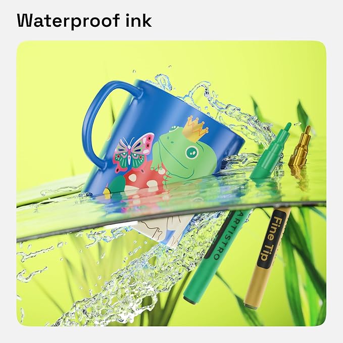 - Professional Quality: Artistro oil based paint markers flow without flooding or jamming with a fine round tip 1-2mm. These paint pens have a Japanese nib and Italian oil based paint in: black, white, gold, silver, brown, blue, yellow, orange, red, green, pink, purple, bright blue, hot pink, and glowing green.