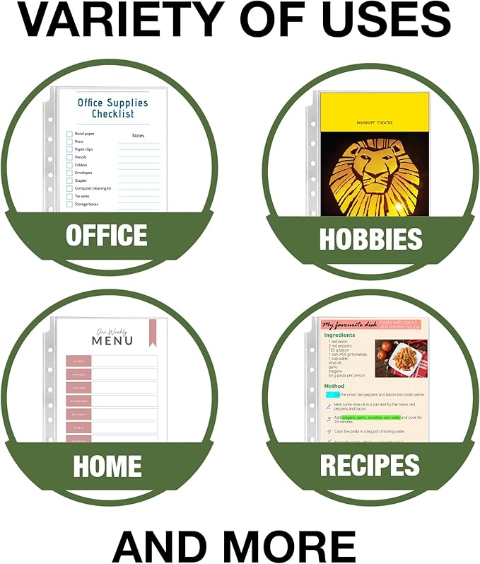 - Easy to Use. Top loading document protectors with 7 separate holes offer our most versatile hole construction that will fit in most mini binders, folders, organizers, and other office products