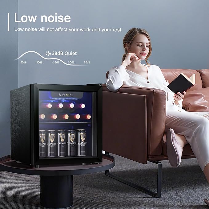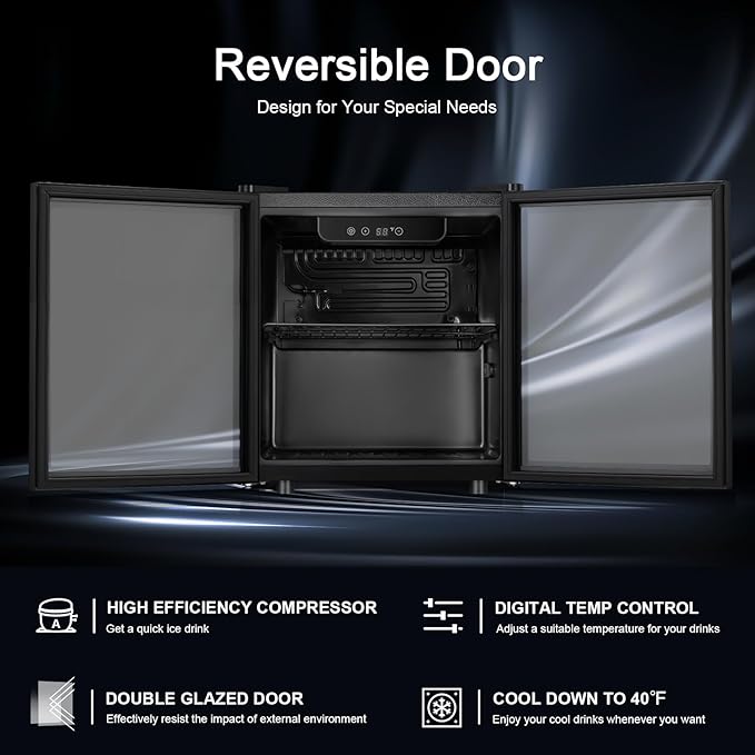 - COMPACT and SLIM: 16.46"D x 16.93"W x 18.5"H inches mini refrigerator can keep a variety of canned drinks or wine chilled without taking up too much space at your home, dorm, bar or office. It can conveniently hold 48 standard-sized drink cans,The interchangeable design of the left and right doors facilitates the selection of storage locations, adapts to the high-quality needs of different people and locations.