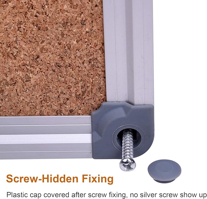 - AESTHETIC: Self-healing cork surface hides push pin holes once push pins are removed. Add and remove notes as you will! Aluminum frame coated in black give a decorative looking.
