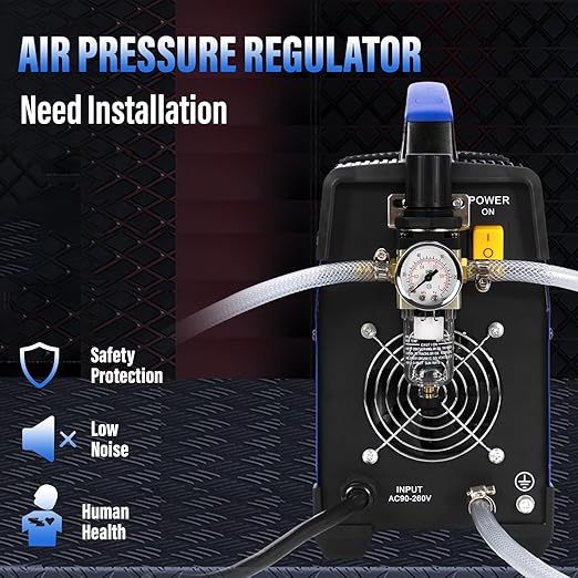 - π [Includes]: Power supply, plasma cutting torch, ground clamp, pre-installed NPT 1/4β industry type D plug, air filter regulator, consumables, instruction manual, and easy setup with lifetime technical support.