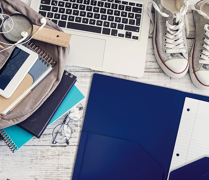 Better Office Products Heavyweight Plastic 2 Pocket Portfolio Folder, Letter Size Poly Folders 24 Pack (Blue)