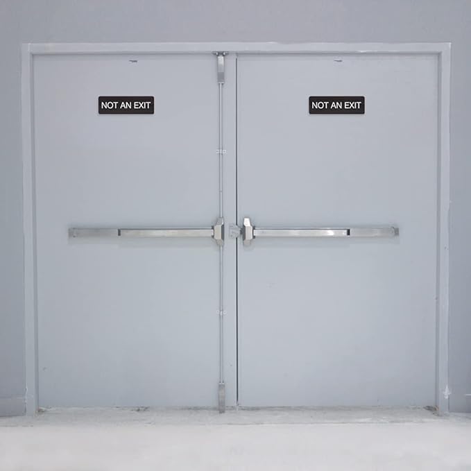 - Includes: One "Not an Exit" sign with adhesive mounting strips on back.
