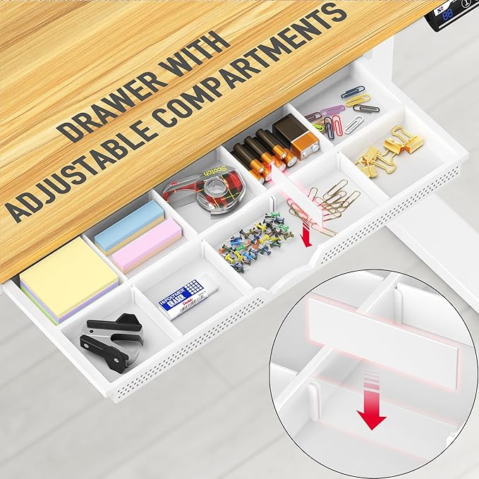 - Smooth Electric Height Adjustment: Transition seamlessly between sitting and standing with the touch of a button. The quiet motorized lift system ensures stable and ergonomic positioning throughout the workday.
