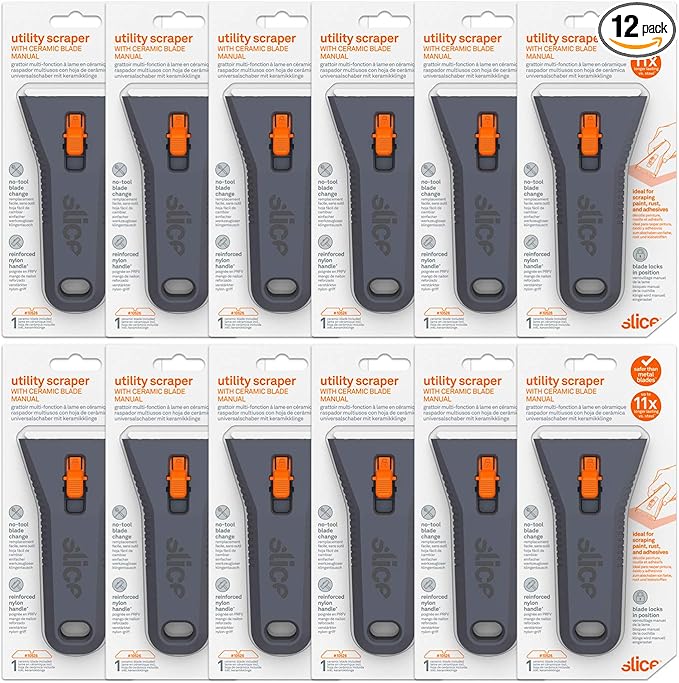 Slice 10591-CS Manual Utility Scraper, Locking Ceramic Blade, Rust Free, Finger Friendly, Soft-Touch Comfort Grips Reduce Strain, 12 Pack, Regular - Manual (Locks in Position) (10591-12)