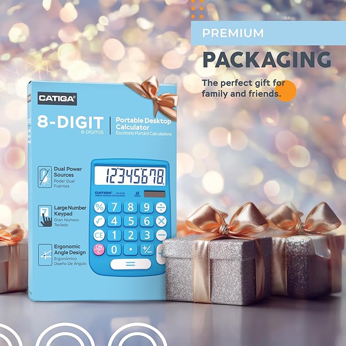 CATIGA Desktop Calculator 8 Digit with Solar Power and LCD Display, Big Buttons, for Home, Office, School, Class and Business, 4 Function Small Basic Calculators for Desk, CD-8185
