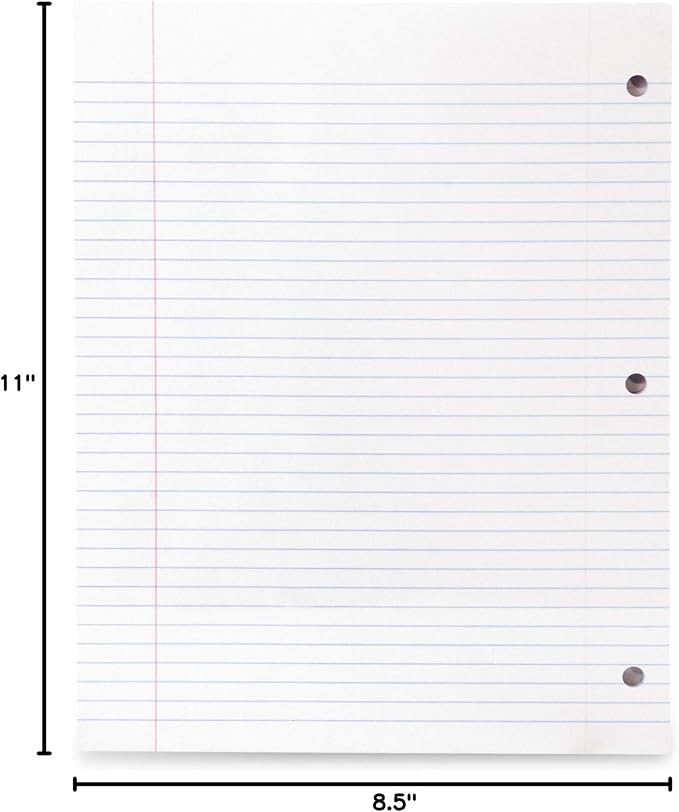 - 600 Sheets (6 packs of 100 sheets) of loose leaf filler paper for 3 ring binder - full cases also available!