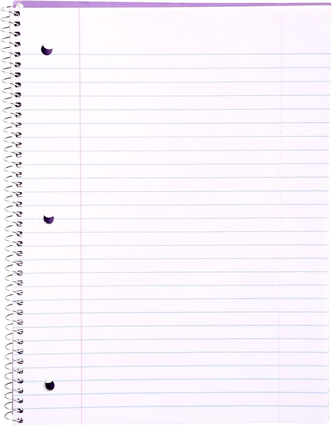 Mintra Office Spiral Notebooks - 1 Subject, 70 Sheets, College Ruled, 8in x 10in, Bulk Pack, PRIMARY Color Covers, Set of 6 - for School, Office, Business, Professional (4657)