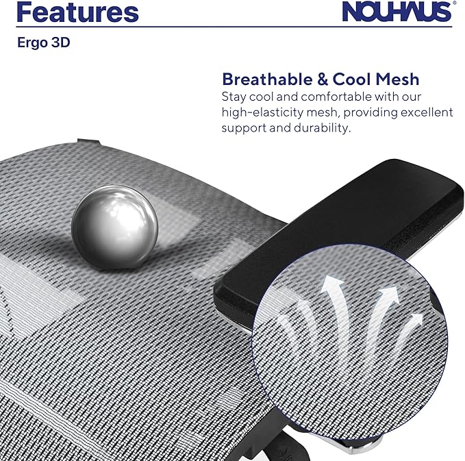 Nouhaus Ergo3D Ergonomic Office Chair Lumbar Support Mesh Office Chair with 4D Adjustable Armrest, Adjustable Headrest and Wheels, Mesh High Back Home Office Desk Chairs (Grey)