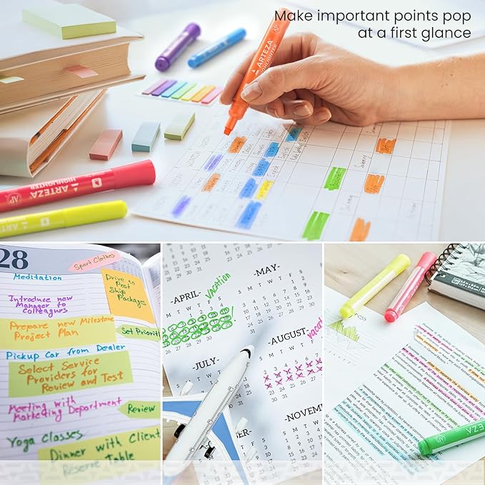 - Fluorescent Markers: Emphasize useful info with one of the 6 neon colors in your pack of 60 Arteza bulk highlighter markers, such as yellow, blue, pink, purple, green and orange.