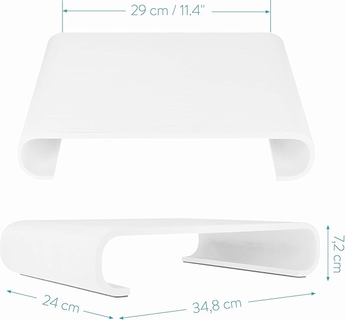 - PRODUCT DETAILS: Overall, the monitor stand measures 13.7" x 9.4" x 2.8". Surface for monitor measures 11.4". Made of real wood with cork padding underneath.