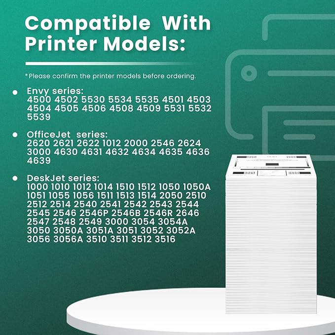 - Compatible Printer Models : HP DeskJet 1000, HP DeskJet 1000-J110a, HP DeskJet 1000-J110c, HP DeskJet 1000-J110d, HP DeskJet 1000-J110e, HP DeskJet 1000-J110f, HP DeskJet 1010, HP DeskJet 1050-J410a, HP DeskJet 1050-J410c, HP DeskJet 1050-J410d, HP DeskJet 1050-J410e, HP DeskJet 1055-J410e, HP DeskJet 1510, HP DeskJet 1511, HP DeskJet 1512, HP DeskJet 1513, HP DeskJet 1514, HP DeskJet 2000-J210a, HP DeskJet 2000-J210b, HP DeskJet 2000-J210c, HP DeskJet 2000-J210d, HP DeskJet 2050-J510a, HP DeskJet 2050-J510c, HP DeskJet 2050-J510d, HP DeskJet 2050-J510e, HP DeskJet 2510, HP DeskJet 2512, HP DeskJet 2514, HP DeskJet 2540, HP DeskJet 2541, HP DeskJet 2542, HP DeskJet 2544, HP DeskJet 2545, HP DeskJet 2546p, HP DeskJet 2547, HP DeskJet 2548, HP DeskJet 2549, HP DeskJet 3000, HP DeskJet 3000-J310a, HP DeskJet 3000-J310c, HP DeskJet 3050, HP DeskJet 3050A, HP DeskJet 3050A-J611a, HP DeskJet 3050A-J611g, HP DeskJet 3051A-J611h, HP DeskJet 3052A-J611g, HP DeskJet 3054-J610a, HP DeskJet 3054A-J611j, HP DeskJet 3056A, HP DeskJet 3510, HP DeskJet 3511, HP DeskJet 3512, HP DeskJet 3515, HP DeskJet 3516, HP ENVY 4501, HP ENVY 4502, HP ENVY 4503, HP ENVY 4504, HP ENVY 4505, HP ENVY 4506, HP ENVY 4507, HP ENVY 4508, HP ENVY 4509, HP ENVY 5530, HP ENVY 5531, HP ENVY 5533, HP ENVY 5534, HP ENVY 5535, HP ENVY 5536, HP ENVY 5539, HP Envy 4500, HP Envy 5532, HP OfficeJet 2620, HP OfficeJet 4630, HP OfficeJet 4631, HP OfficeJet 4632, HP OfficeJet 4634, HP OfficeJet 4635, HP OfficeJet 4639 HP DeskJet 1000, HP DeskJet 1000-J110a, HP DeskJet 1000-J110c, HP DeskJet 1000-J110d, HP DeskJet 1000-J110e, HP DeskJet 1000-J110f, HP DeskJet 1010, HP DeskJet 1050-J410a, HP DeskJet 1050-J410c, HP DeskJet 1050-J4… See more
