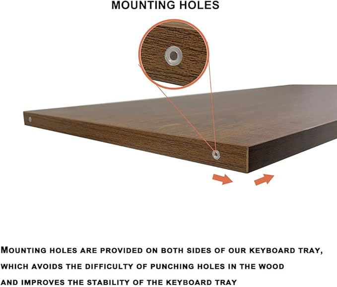 - HIGH QUALITY MATERIAL: Wooden keyboard drawer are not only sturdy but also stylish, suitable for a variety of applications. It is equipped with steel ball bearing slides for smooth sliding and reducing noise.