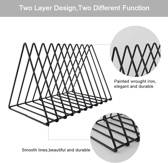 - ELEGANT AND DECORATIVE FILE FOLDERS: The elegance are one of the important factors that was kept in mind while designing this simple yet attractive mail organizer for desk. The black coat finish with triangular section give metal desk file organizer an attractive look and also protect portable file organizer from getting damaged