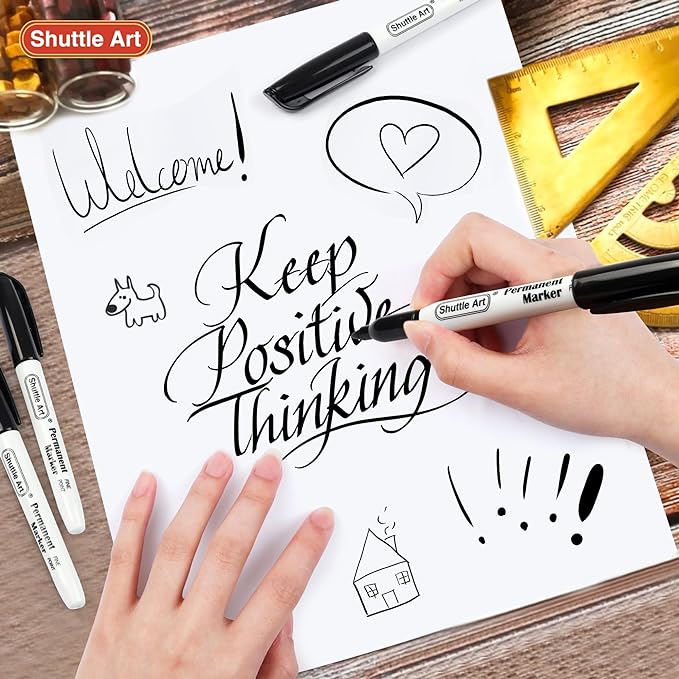 - UNLIMITED USES:Shuttle Art permanent markers are ideal for detailed marks,drawing, writing, coloring, scrap booking, doodling, filling in paper, plastic, metal and most other surfaces that allows you to show off your creative side.
