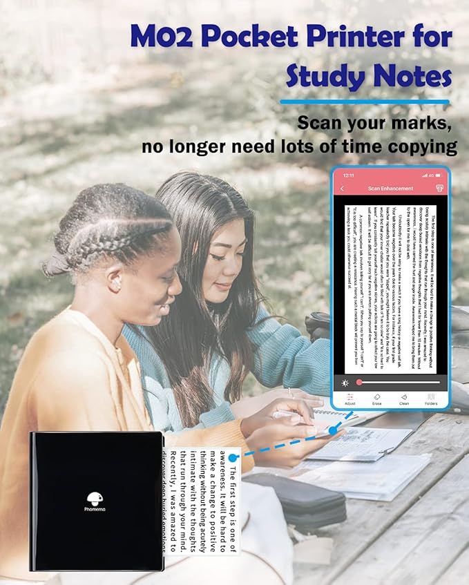 - Mini Mobile Printer with Powerful APP- one-click printing, saving time and effort, phomemo M02 note printer can print photos and text instantly, phomemo app offers variety of fonts, filter effects and themes, makes your black and white image more HD.