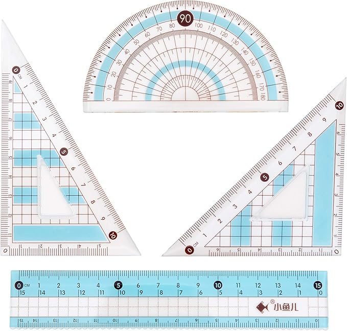 - Package Includes:1 PC pencil, 1 PC Pencil sharpener, 2 PCS triangle rulers,1 PC straight ruler, 1 PC protractor,1 PC graphic compass and 1 eraser.