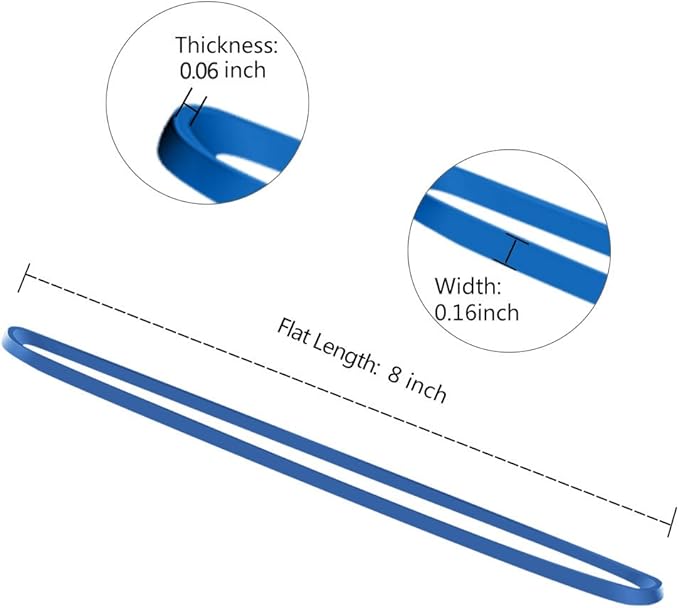 - Stretchable and Sizeable: Each rubber band measures 20 cm/8 inches in flat length and stretches up to 4.5 times its size, providing excellent flexibility for bundling objects. The rubberband is 4 mm/ 0.16 inch in width and 2 mm/ 0.08 inch in thickness.