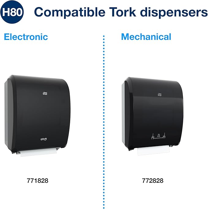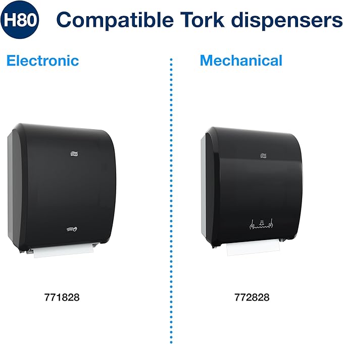 - 6 rolls, 1 ply. Universal quality. Roll size L 800.0'. W 8.0" Core inner diameter 1.9" Compatible with H80 dispensers.