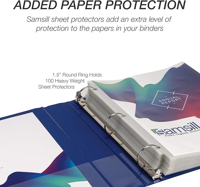 - Heavy-Duty 3-Ring Binders: Built to withstand frequent handling in classrooms, offices, and professional settings, these 1 1/2-inch durable binders securely hold up to 350 sheets of standard 8.5" x 11" paper. The robust round-ring design provides smooth page turning with reinforced hinges for long-lasting reliability. Equipped with two clear interior pockets, they’re ideal for keeping important documents, project materials, or office essentials organized and secure