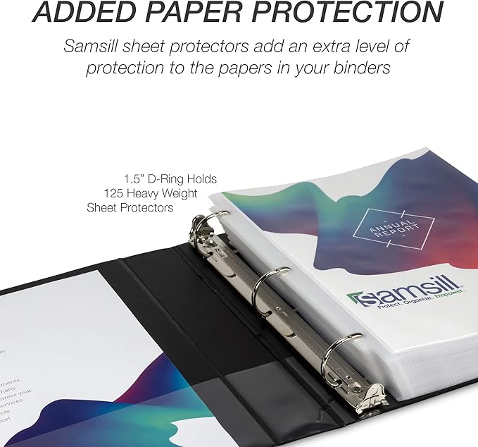 - Heavy-Duty Design: This Samsill 1.5-inch 3-ring D-ring binder features a robust D-ring construction that provides tear-resistant storage for heavy loads. Ideal for school supplies, office filing systems, and home document organization, it holds papers securely without bending or slipping, making it a reliable choice for daily use