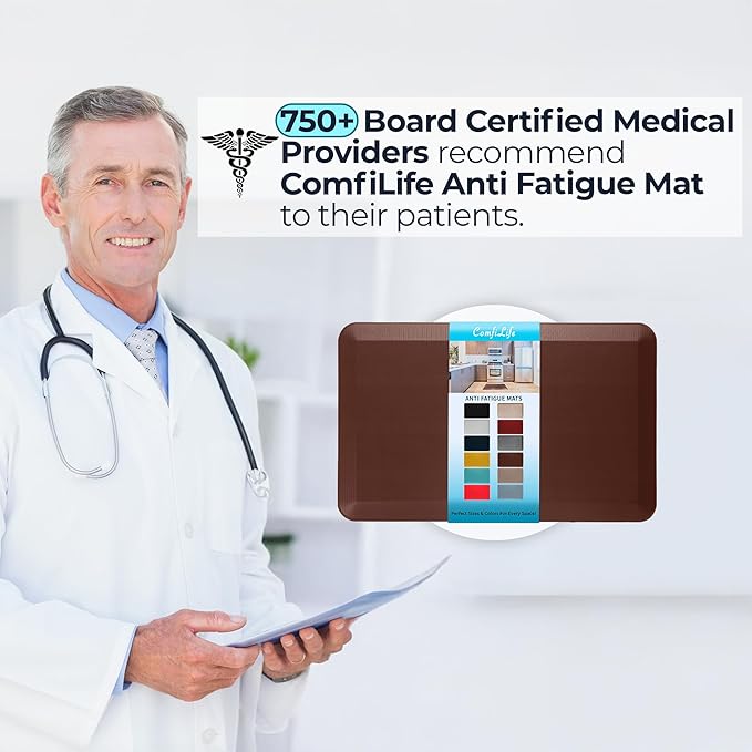 ComfiLife Anti Fatigue Floor Mat – 3/4 Inch Thick Kitchen Mats for Floor, Standing Desk Mat, Kitchen Rug – Comfort at Home, Office – Durable – Stain Resistant – Non-Slip Bottom (20" x 32", Brown)