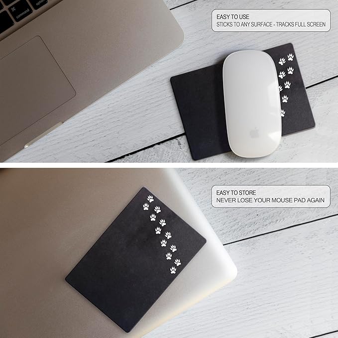 Mouse Pad Adhesive Bottom - Sticks to Any Surface - Portable - Webcam Covers and Screen Cleaner Included (Cat Paw)