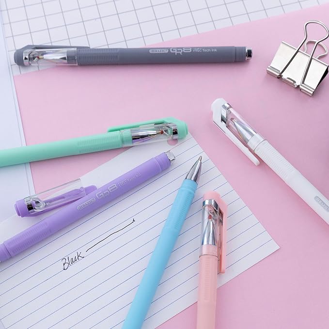 BAZIC Oil Gel Fuse Tech Ink Pen, GR8 Dazzle Black Ink w/Rubberized Barrel, 0.7 mm Medium Point Smooth Writing, for Office School (3/Pack), 6-Pack