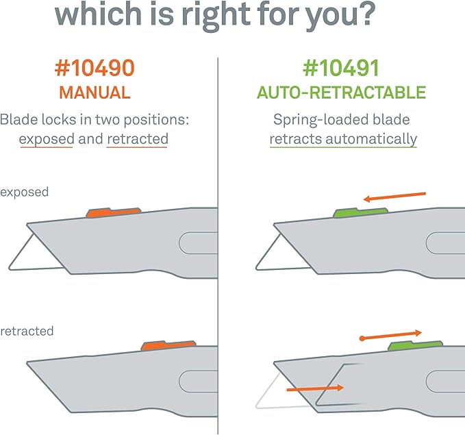 Slice 10491 Metal-Handle Utility Knife, Finger Friendly Ceramic Blade, Auto Retracts for Safety, Heavy Metal Handle, Comfortable Grip, Stores Extra Blade, Ambidextrous, Easy Blade Change - 6 Pack