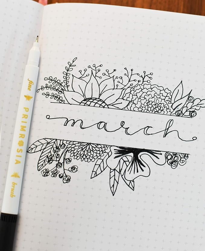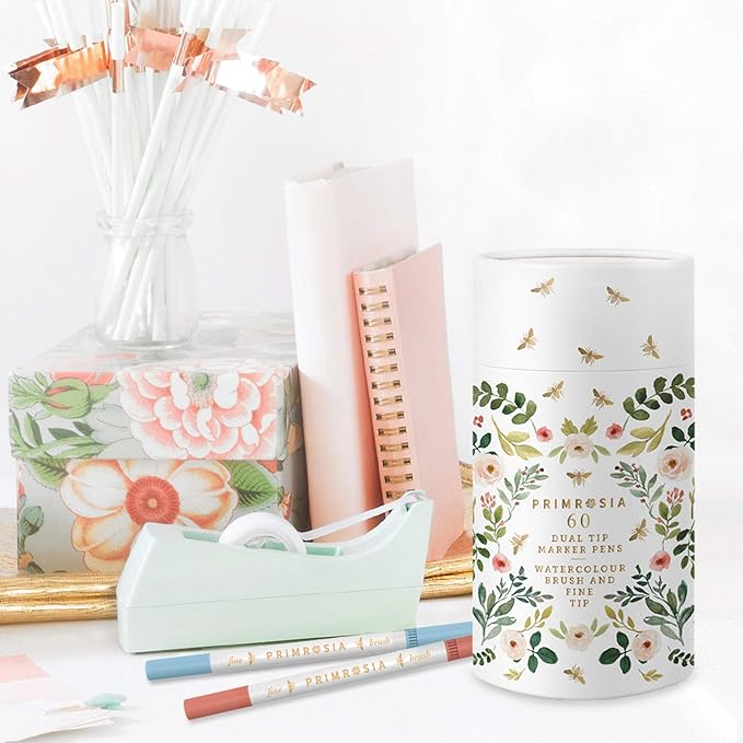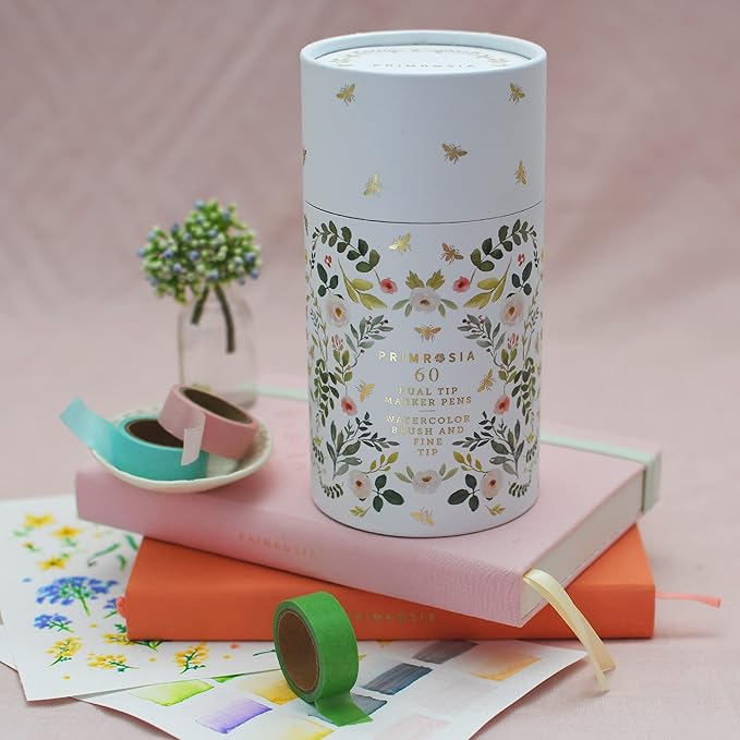 Primrosia 60 Dual Tip Marker Pens, Fineliner and Watercolor Brush Pens for Art Sketching Illustration Calligraphy Permanent Highlighter Bullet Journal Drawing Coloring