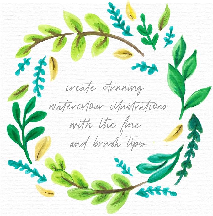 - Two tips on the one marker: On one end is a watercolor felt tip brush that offers stunning color and vibrancy to create gorgeous brush strokes that are blendable for shading and coloring. At the other end is a 0.4 fineliner for outlining and detail