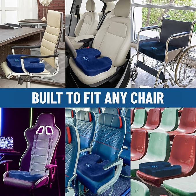 Everlasting Comfort Doctor Recommended Memory Foam Seat Cushion for Office Chairs & Car Seat - Ergonomic Office Desk Accessories for Tailbone Pain Relief, Sciatica & Back Support