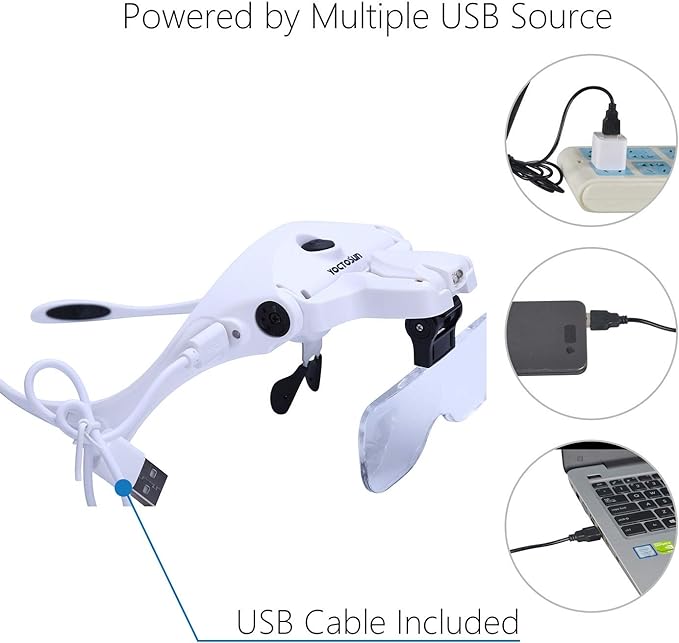 YOCTOSUN LED Head Magnifier, Rechargeable Hands Free Headband Magnifying Glasses with 2 Led, Professional Jeweler's Loupe Light Bracket and Headband are Interchangeable