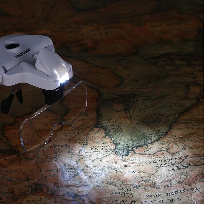 - ADJUSTABLE BRIGHTNESS LEVELS: There are two brightness levels which provide excellent light for illuminating detailed surfaces.Two levels of brightness is available by pressing the switch on the top of the headset magnifier.
