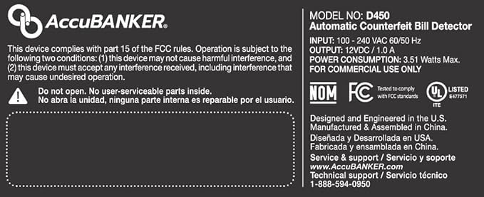 - 5 COUNTERFEIT DETECTION METHODS: AccuBANKER D450 Counterfeit Bill Scanner has Ultraviolet, Magnetic Ink, Infrared, Watermark & Size Detection for USD (US Dollars $) Bill Banknotes. UL Listed
