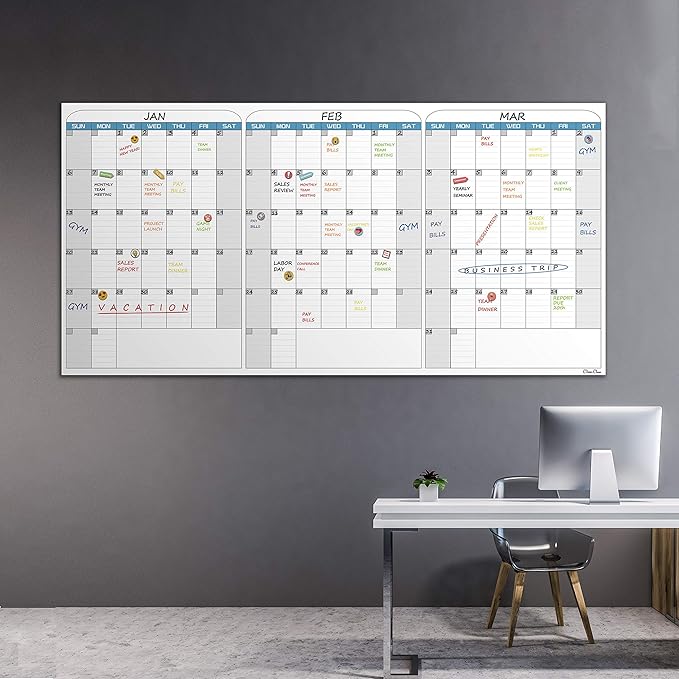 - Stay organized in style - Keep your life in order with this massive 36"x72" 3-month undated horizontal wall calendar. Perfect for home, school, and office projects, this jumbo-sized calendar allows you to start with any month you choose. Each date box is 3.3"x5.2" with 6 rows of gray lines, providing ample space to plan your schedule.