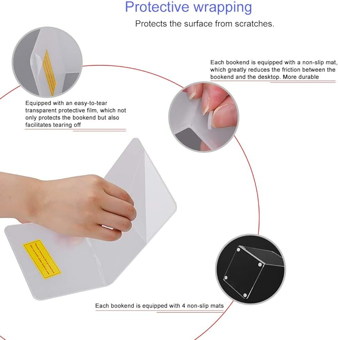 - HIGH QUALITY - Made of high-quality acrylic materials.Thicker than normal acrylic bookend (thickness 0.15"/4mm),the bookends is strong enough to hold multiple books.lic Bookends