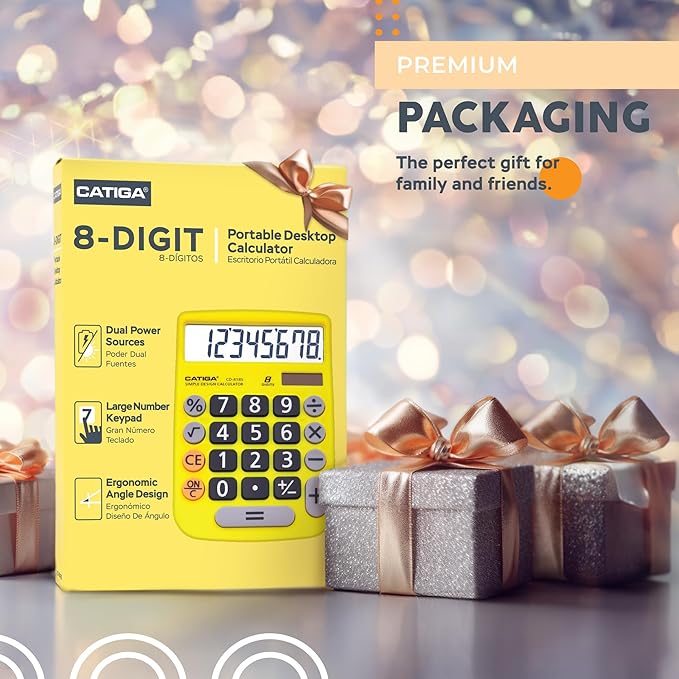 CATIGA Desktop Calculator 8 Digit with Solar Power and LCD Display, Big Buttons, for Home, Office, School, Class and Business, 4 Function Small Basic Calculators for Desk, CD-8185