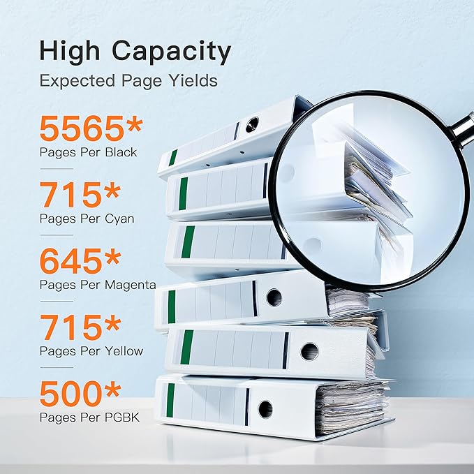 - Page Yield: Black is 500 pages per cartridge and Color is 300 Pages per cartridge (5% coverage)