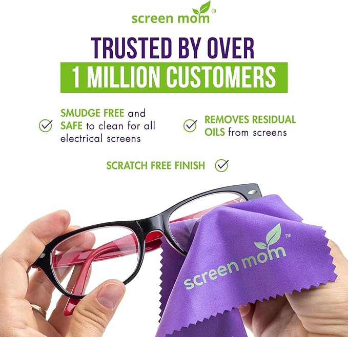 - 6-PACK OF REUSABLE, WASHABLE TOWELS FOR LONG-LASTING VALUE: Each set includes 6 durable Screen Mom screen cleaner microfiber cloths that can be washed and reused, making them a practical choice. Keep one at home, one in the office, or one in your bag—each monitor cleaner cloth stays soft and effective use after use, providing reliable screen care. Use confidently as an electronic spray cleaner cloth or LED screen cleaner cloth.